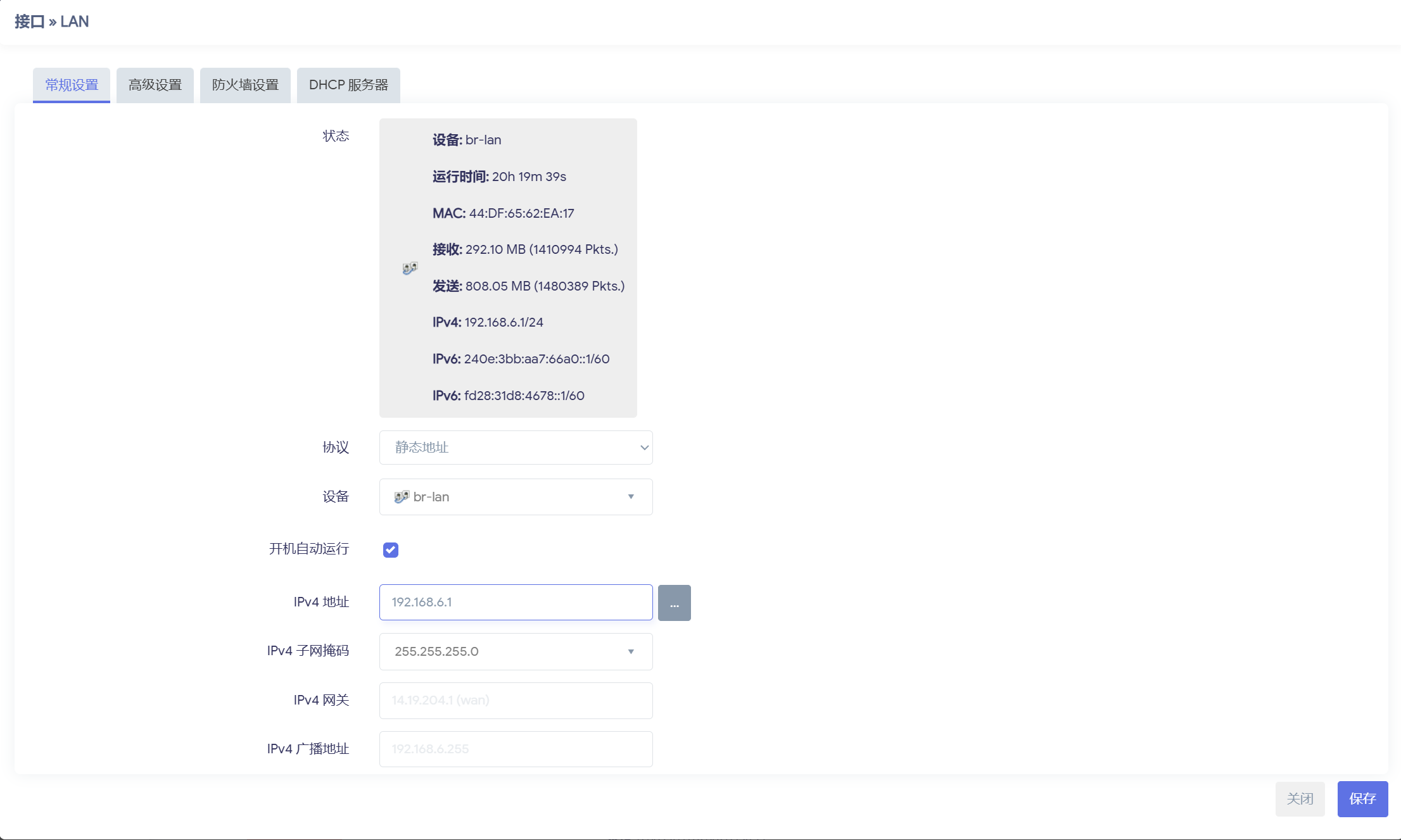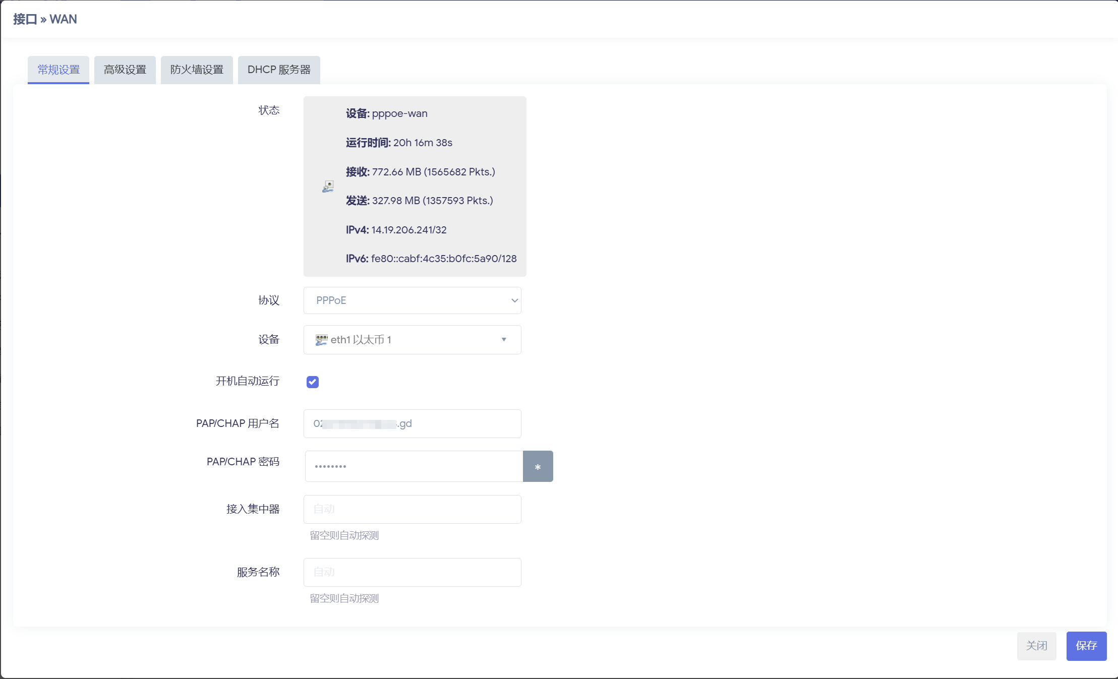 进入 网络-接口 协议选择 PPPoE ,输入宽带账号密码